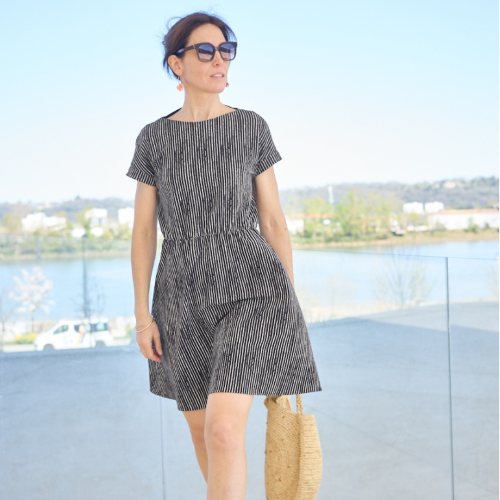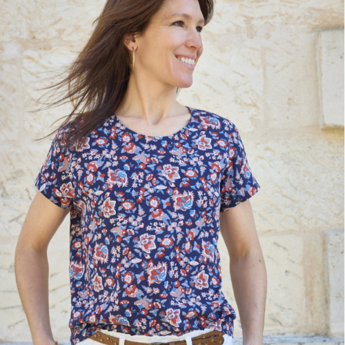 Patron de blouse, t-shirt ou robe à l’emmanchure basse pour un style résolument cool. Le modèle se réalise en chaîne et trame ou en maille, et propose 2 formes d’encolures : ronde ou bateau. Pour chacune, finition biais, parementure ou bande jersey (pour une encolure ronde en maille). A agrémenter d’une manchette ou d’une manche courte ou très courte froncée, posée en simple ou en double épaisseur.